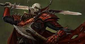 Warrior-vampires cursed by Abhorash after he drank the blood of a dragon. Obsessed with martial perfection, they wander the world seeking worthy foes. In Bretonnia, slaying a Blood Dragon is the fastest path to knighthood – and the surest path to death. They wear ancient, blood-red armour and refuse to feed on innocents, believing only the blood of warriors strengthens them. Notable: Abhorash, Walach Harkon, The Red Duke.